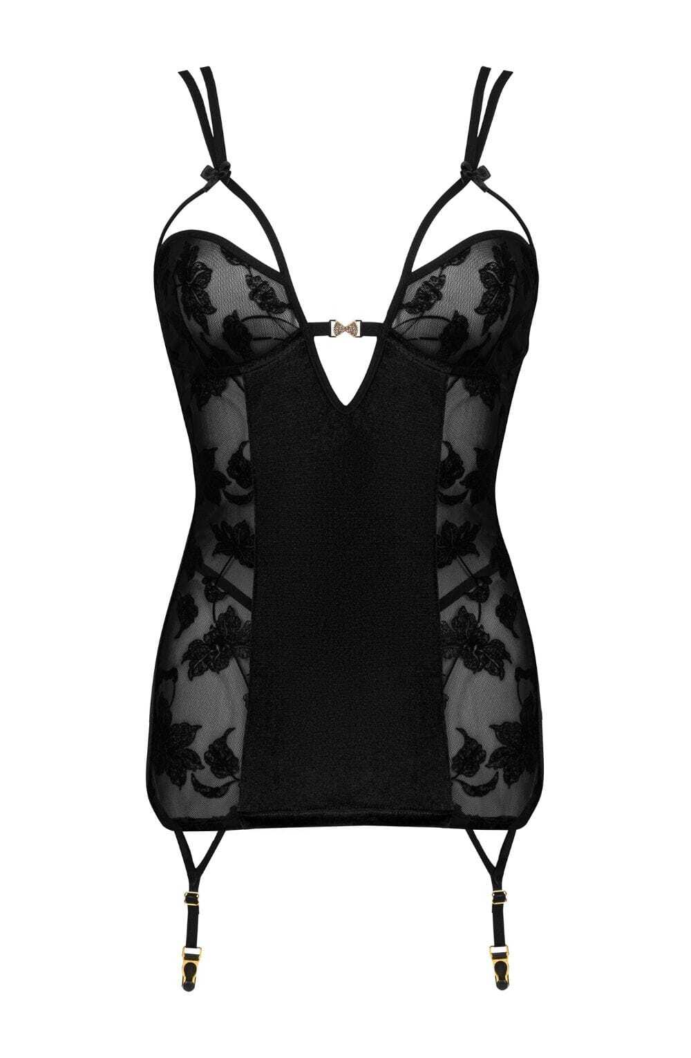 Introducing Xiomara by Beauty Night BN6697 – where sophistication meets seduction. This captivating chemise blends sumptuous velvet with intricate lace detailing, sculpting your silhouette with underwired support and adjustable straps for a custom fit. The showstopping lace-up back creates an air of mystery, while coordinating garter straps add an extra touch of allure. Paired with matching velvet briefs, this ensemble delivers head-turning elegance from every angle. Beautifully presented in premium packaging, it's the ultimate choice for unforgettable moments. Stockings sold separately.